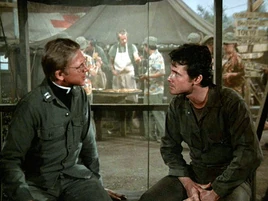 Word from the Command Chaplain comes back, but it is not good news: the Command Chaplin has determined that the Mess Tent is not a permanent structure, so it cannot be considered a church, and therefore cannot be used for sanctuary. But when Mulcahy still refuses to concede, Spears has had enough and orders his MPs to go in and arrest Gillis, who panics and grabs for his rifle.