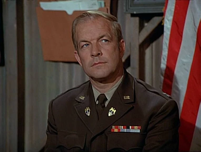 Although this appearance is not credited, Mitchell addresses him as "Fox" and this is the only episode where his name is mentioned. He only gets one line towards the end of the trial. Mitchell has concluded the proceedings and tells Henry and the others that he would like to invite them all to the Officers Club for a drink but it is still closed. Fox interrupts to say that he has the key. Mitchell is so pleased that he tells Fox to write himself up for a Silver Star medal.