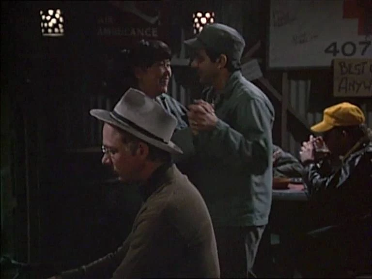 Outside, Jack meets Corporal Howard Owens as they both board the ambulance bus to be taken to Seoul. Owens is afraid of being sent back to the war. Jack, who is being taken out of the line, would like nothing better. "Not a very fair war," B.J. remarks. Just as Jack boards the bus, a chopper arrives. It's Dangerous Dan carrying more wounded and taking back the chopper pilot of the year title. Not a very fair war indeed.