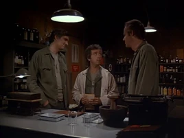In Post-Op, a problem arises: the hospital is down to their last box of morphine, and the supply truck is already a half hour late with more. They hope that what little they have will last them through the night, but when Kellye administers it to one of the patients, he has a violent reaction, and the doctors conclude that the patient may have a severe infection, or the morphine they have might be contaminated. Back in Potter's office, they discuss their options; Charles suggests using the morphine, thinking the one soldier's reaction was an isolated incident, but Potter comes up with a different idea, one that he dispenses in secret: giving the patients sugar pills - placebos. Basing the idea on something he saw a doctor give his Aunt when he was a child, he believes that if the doctors can sell it - really sell it - it just might work.