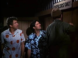As Frank and Margaret enjoy a quiet drink (he's having a Shirley Temple, she's having a scotch old-fashioned without the fruit) in the club, Hawkeye and Trapper try to get them to sign a petition allowing enlisted personnel. Naturally, they refuse.